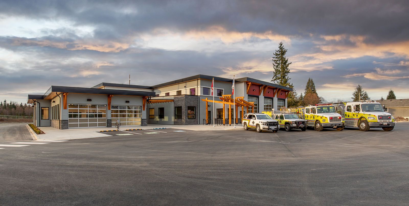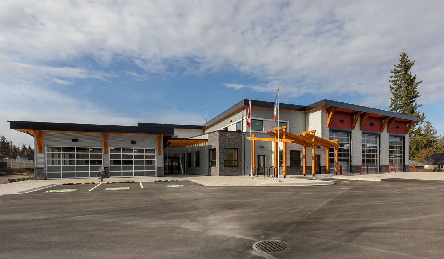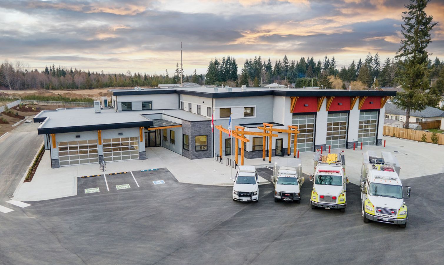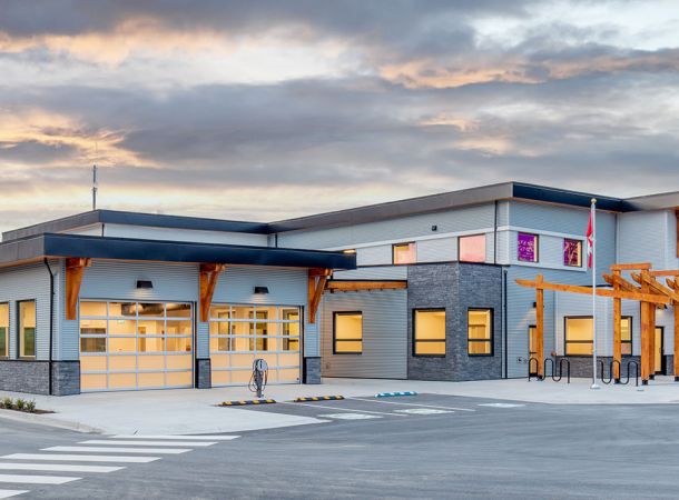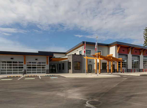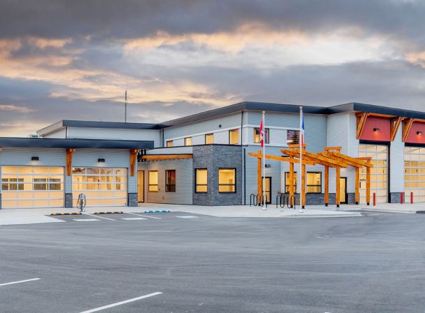 Built to post-disaster standards, the new Firehall resolved significant operational safety and structure issues. A collaborative design-build with the Client that included precast concrete wall panels to allow capacity to house modern day equipment.